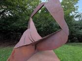 Mediumsteel sculpture, outdoor, mounted on concrete base, dedication plate on base