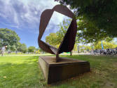 Across the Cut near Doherty Hall is "Cloud Window," by former faculty member Ron Bennett. Prior to sculpting it, Bennett had learned to fly and recorded shapes and forms of the land through aerial photography.