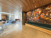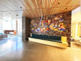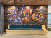 The designs reference the color, composition, and narrative richness of medieval tapestries, which were displayed in communal settings to provide both aesthetic charm and physical comfort in otherwise austere environments. Much like their medieval counterparts, these murals weave together a story of community and celebrate the multifunctional nature of the Neighborhood Commons, a third place on campus designed to foster rest, creativity and social exchange.