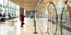 That’s the title of a new 44-feet long, 8-feet tall mural by artist Stephanie Dinkins in the lobby of TCS Hall. It’s the latest public art piece on campus selected by Carnegie Mellon’s Public Art Curator Elizabeth Chodos and the Public Art Committee.